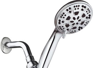 AquaDance Giant 5″ 6-Setting All Chrome High Pressure Hand Held Shower Head with Hose...